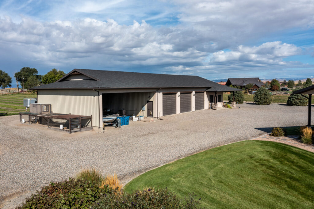 Premier property custom built with many extras such as high end appliance’s, 3 ovens-gas and electric, 5 burner gas stove, granite counter top and quartz countertops, Breakfast nook with french doors leading to a covered back patio with hot tub and gas grill hook up , central vacuum, vaulted ceilings withl wood stained beams, large picture windows with battery operated shades, 2 sided natural gas fireplace with blowers, large capacity pantry with motion lights, built in custom ceiling led lighting in foyer, walk in closets, primary bathroom has a barrel ceiling, waterfall tub faucet, large shower with bench seats, lateral drain, and multiple shower heads, 67″ soaker tub, and much more. call listing agent for list of upgrades in home. 30 x 40 carport, 57 x 40 shop with bays, shop office and 3/4 bath with on demand water heater, This is every ones dream home!